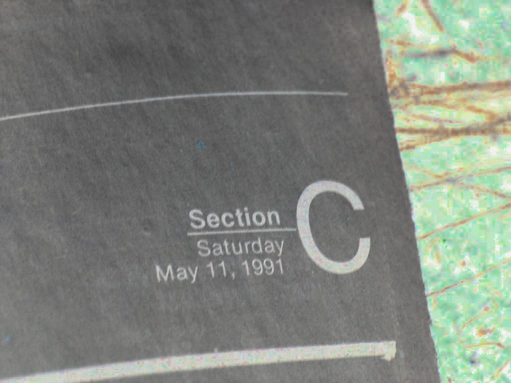Hi res | Lo res | Now inside the house of atrocities, the BIKE GODS notice something very eerie: it is nearly 10 years to the day from the time of the Writch's first killing. The newspaper strewn about the floor is dated May 11, 1991. Legend tells that the Writch made her first kill on a Monday; the BIKE GODS deduce that today is, in fact, 10 years to the day from that Black Monday, on May 6, 1991. This weekend paper was likely delivered by the same unwitting paperboy who was last seen leaving on his morning route that fateful Saturday after Black Monday. |