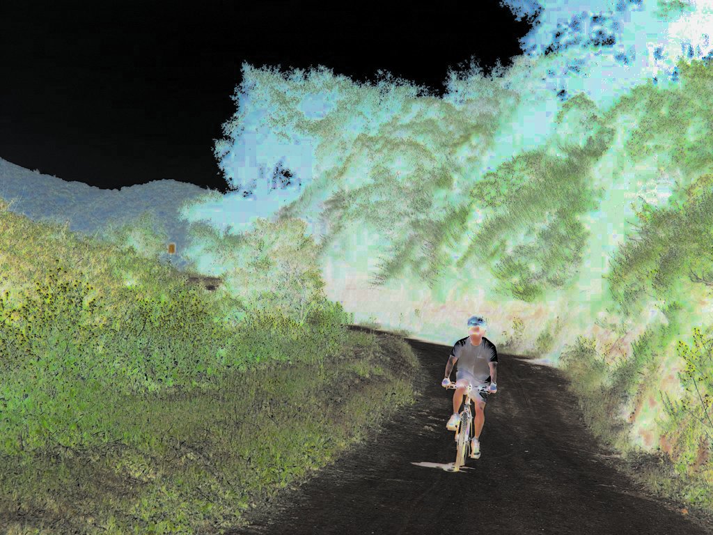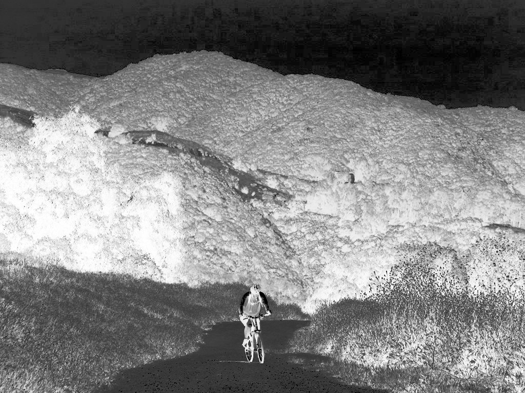 Hi res | Lo res | TsaiBorg comes racing up the hill, completely unafraid of the Clare Writch which has kept so many honest mountain bikers away from these beautiful trails. The BIKE GODS are on a mission to root out the evil that has plagued this hill for a decade. |
